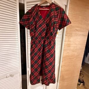 Gymboree Christmas Plaid Dupioni A-Line Wrap Midi Ruffle Dress Sz 2XL Adult 2963