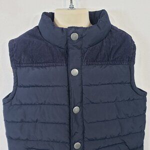 Gymboree Corduroy Trim Puffer Vest Size 4T - 5T Navy Blue Pockets Snap / A290