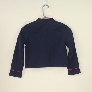 This Gymboree girl's jacket is 100% cotton with cute half-sphere buttons and is great for chilly autumn days! Button close front pockets.