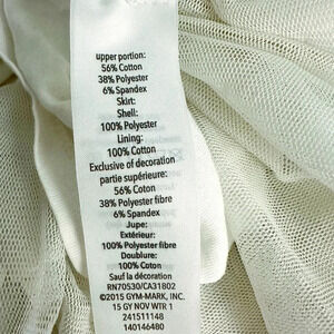 • 56% cotton/38% polyester/6% spandex jersey bodice and sleves; 100% polyester tulle skirt