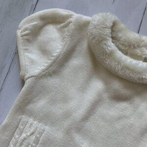 Pretty cream colored knit sweater dress. Faux fur collar. Size 2T.