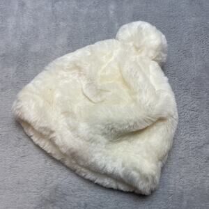 Gymboree Faux Fur Beanie Hat Baby Girls 0-12 Months Ivory Lined Pom Pom Winter