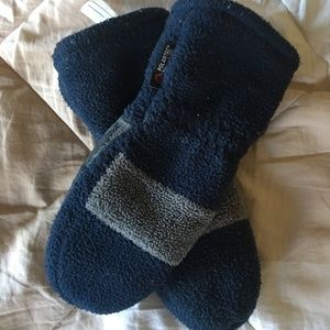 The Land's End mittens are size small and are made with a polyester fleece outside and are lined for extra warmth. They say Polartec Aircore 200 on them.