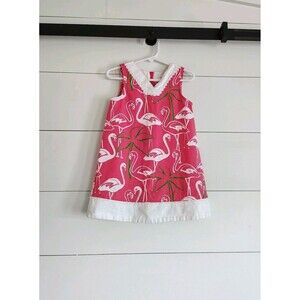 Gymboree Flamingo Shift Dress Pink Green Girls Preppy Summer Bright Cruise Sz 4