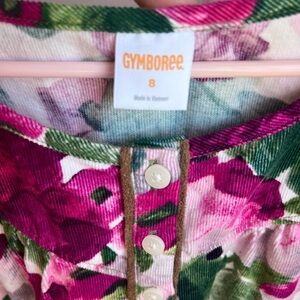 Charming floral dress by Gymboree. Features vibrant pink and green hues with button details.