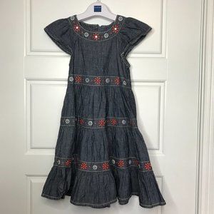 Gymboree Floral Embroidered Denim Tiered Maxi Dress 100% Cotton Zipper Girls 5