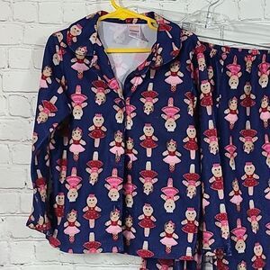 Gymboree Gingerbread Ballerina Girls 5/6 Navy Long Sleeve Flannel Pajama Set