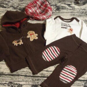 Gymboree Gingerbread Boy 3-6 Month Hoodie Shirt Pants Hat NWT Outfit.