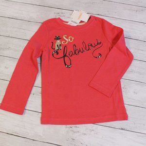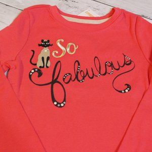-So Fabulous Coral Cat Top with faux rhinestones/pearls - Size 4