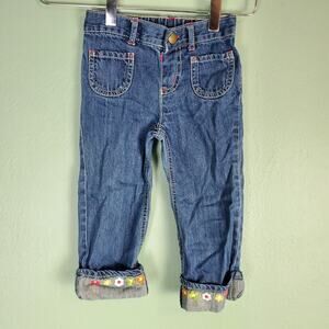 Gymboree Girl's Fall Homecoming Outlet Embroidered Flower Cuffed Jeans Size 18-24M
