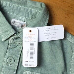 This Gymboree Girl's jumpsuit, size 16-24M, features a unique dyed green color and charming embroidered daisies on the front pockets. Made of 100% cotton, it's both stylish and comfortable.