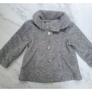 Gymboree Girls Grey Fleece Dress Winter Coat Jacket Bow Collar 12-24M