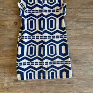 Gymboree Girls Navy & White Geometric Print Dress – Cap Sleeve Shift Style Small