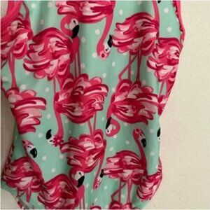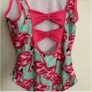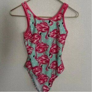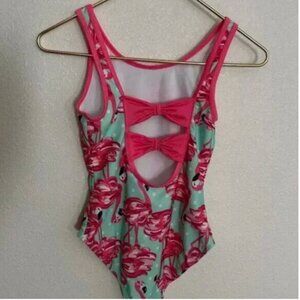 Gymboree Girls' Pink Flamingos Back Bows One Piece Swimsuit Size Large (10-12)