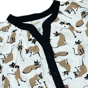 Gymboree Girls Size 7 Retro Cat Print Button Down Shirt White Black Tan