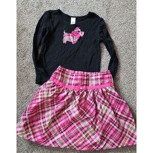 Gymboree Girls Size 7 Skirt Set Holiday Plaid Winter Pink Black Dog Christmas