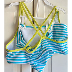 Gymboree Girl’s Sz 14 Turquoise Blue 3 Piece Set Rash Guard Bikini
