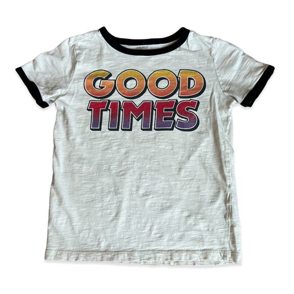 Size 5-6 Gymboree Good Times ringer tee. No stains or flaws. Very good used condition.