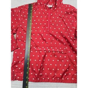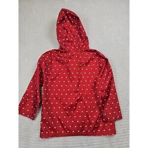 The Gymboree Jacket is a stylish and practical choice for young girls. Made from 100% polyester, this red hooded pullover jacket features a quarter zip closure and is designed as a windbreaker. With a trendy style and a size 6 fit, this jacket is perfect for keeping girls warm and protected during outdoor activities. The hood adds an extra element of protection and comfort, making this jacket a must-have for any young fashionista's wardrobe.