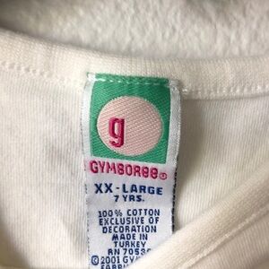 Play condition white set from gymboree. Both items have areas with discoloration that I have not tried to remove - see photos. It may be possible to bleach out the discoloration or use these pieces for a tie dye project. Size XX-Large / 7 years.