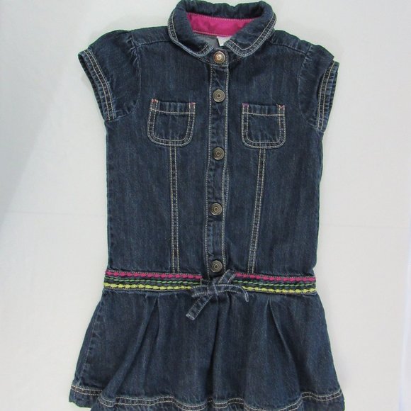 Gymboree - Little Girl's Size 5 Denim Jean Dress - Embroidered Accents & Pleated
