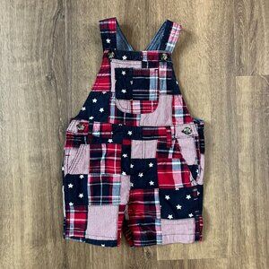 Gymboree Madras Shortalls & Plaid Button Down Shirt American Patriotic Sz 12-18