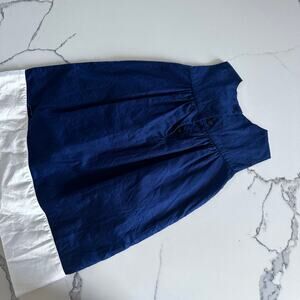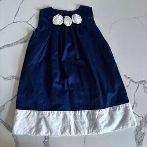 This adorable Gymboree Marina Party dress is perfect for your little one! The colorblock design in white and blue is complemented by a sweet rosette detail. It is fully lined and features a button back closure. In excellent condition and ready to wear. Size 3T.