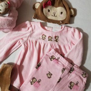 Gymboree Mischievous Monkey 6-12 Pants, shirt, bib, Pocket pal small Lovey, hat
