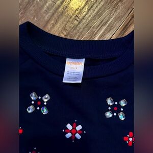 Charming Gymboree navy sweatshirt with red and white floral gem designs. Ideal for casual wear. Offered in toddler girls size XS - 4