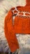 Autumn vibes, orange light weight cardigan with pumpkin design. Perfect for festive occasions. Sweater is shorter in length, hits right at waist.