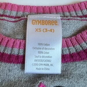 Size XS 3-4 Gymboree girls cotton sweater. Ribbed pink striped trim. Large black and white panda bear applique on the front. No stains or flaws.