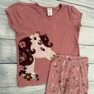 Gymboree Pink Pajama Set with Ruffled Top and Floral Bottoms/girls size 7