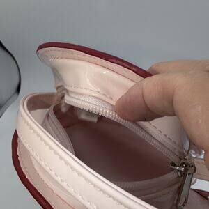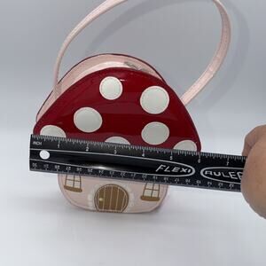 The Gymboree Pink Red MUSHROOM HOUSE Purse Bag is a charming small purse with a Fairy house. Made from polyurethane material, this pink purse has a zip closure and comes with a strap accent. Perfect for young girls. This top handle bag from Gymboree is a delightful accessory for any young fashionista looking to add a whimsical touch to their outfit.