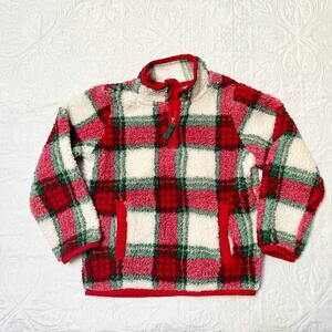 Gymboree Plaid Sherpa Fleece Half Zip Pullover Sweatshirt. Holiday green and red plaid with front pockets. Good condition, light wear. Size 4T.
