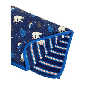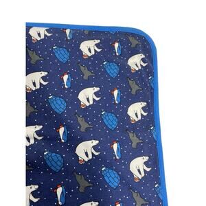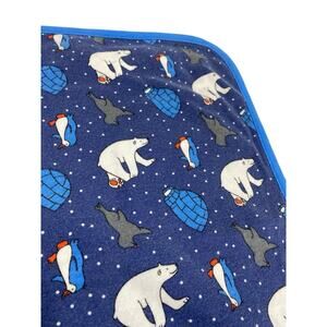 Gymboree Polar Bear Penguin Seal Baby Blanket Blue Stripe Vintage RAINBOW TAG
