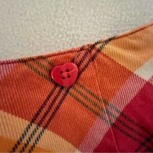 Pink and orange plaid skort with heart buttons paired with light pink “my heart belongs to daddy” T-shirt.