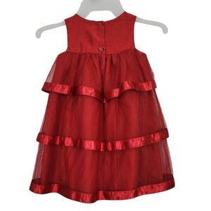 Gymboree Red Tiered Ruffle Tulle Maxi Babydoll Dress, Sleeveless, Satin Trim, bow on front, button back closure, Party Christmas Dress up Princess Formal.