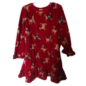 Gymboree Reindeer Pajama Gown Size S Small 5 6 Years Red Girls Fleece