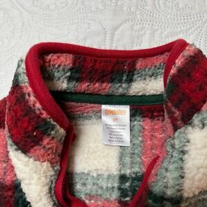 Gymboree Plaid Sherpa Fleece Half Zip Pullover Sweatshirt. Holiday green and red plaid with front pockets. Good condition, light wear. Size 2T.