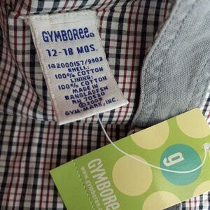 Gymboree Size 12 18 Mos Shortalls Infant Cargo Gray Plaid Cotton Rhino Patch NEW