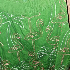 Great sun dress with stitched flamingos and palms on it