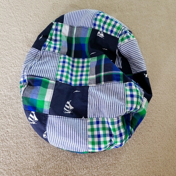 sailboat and green and blue gingham patchwork boys cap. from the Spring Prep collection. size Large (10-12) and like new condition.