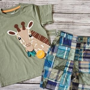 Gymboree Summer Safari Giraffe T-Shirt Binoculars Tank Top & Patchwork Shorts