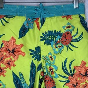 Gymboree Swimwear Swim Trunks Boys Size 12 Bright Tropical Print Elastic Tie Waist Back Pocket Mesh Lined