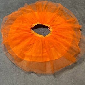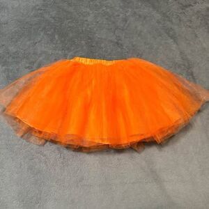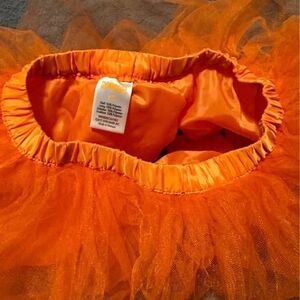 100% polyester mesh, tulle layers, fully lined in polyester taffeta, easy pull-on style, elastic waist, above-the-knee length
