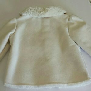 Beautiful little off-white faux fur jacket, so soft and warm in toddler girls size 2T/3T. Made by Gymboree, 100% polyester, machine wash cold, tumble dry low, DO NOT iron. This was a favorite from the Winter Cap collection of 2013! Very pretty!