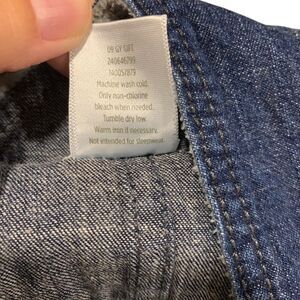 Gymboree Toddlers Embroidered Penguin Blue Jeans Denim Blue Overalls Bib 2T is a sleeveless overall in solid blue color with adjustable straps and embroidered accents. Made of polyester and cotton denim fabric, it features a buckle closure and is machine washable. Suitable for casual occasions, this one-piece garment is designed with a penguin theme, making it a cute and versatile addition to a toddler's wardrobe.