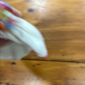 Adorable white beanie with pink trim. Features a colorful pom pom on top. Ideal for a playful look. Preowned. Size 12 to 24 months.