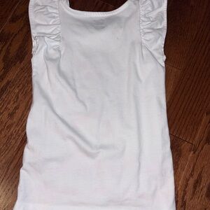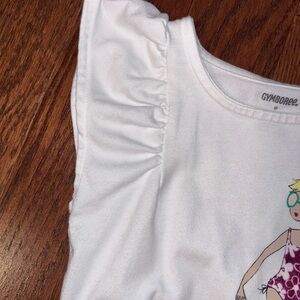 Soft white top by Gymboree. Comfortable cotton blend fabric. This Gymboree Surfer Girls, Catch a Wave Top T-Shirt in size 6 features a round neckline, short sleeves, and glitter, ruffles detailing for a touch of elegance. Made from a blended fabric with glitter and ruffle accents, this pullover top is perfect for parties or casual wear during the winter, fall, or spring seasons. The white color and solid pattern make it versatile for various occasions, while the regular fit and 100% cotton material ensure comfort and quality. Perfect for young girls who love dance and want to look stylish while walking or at school.