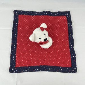 Gymboree White Teddy Bear 14" Lovey Red White Blue Security Blanket Polka Dots